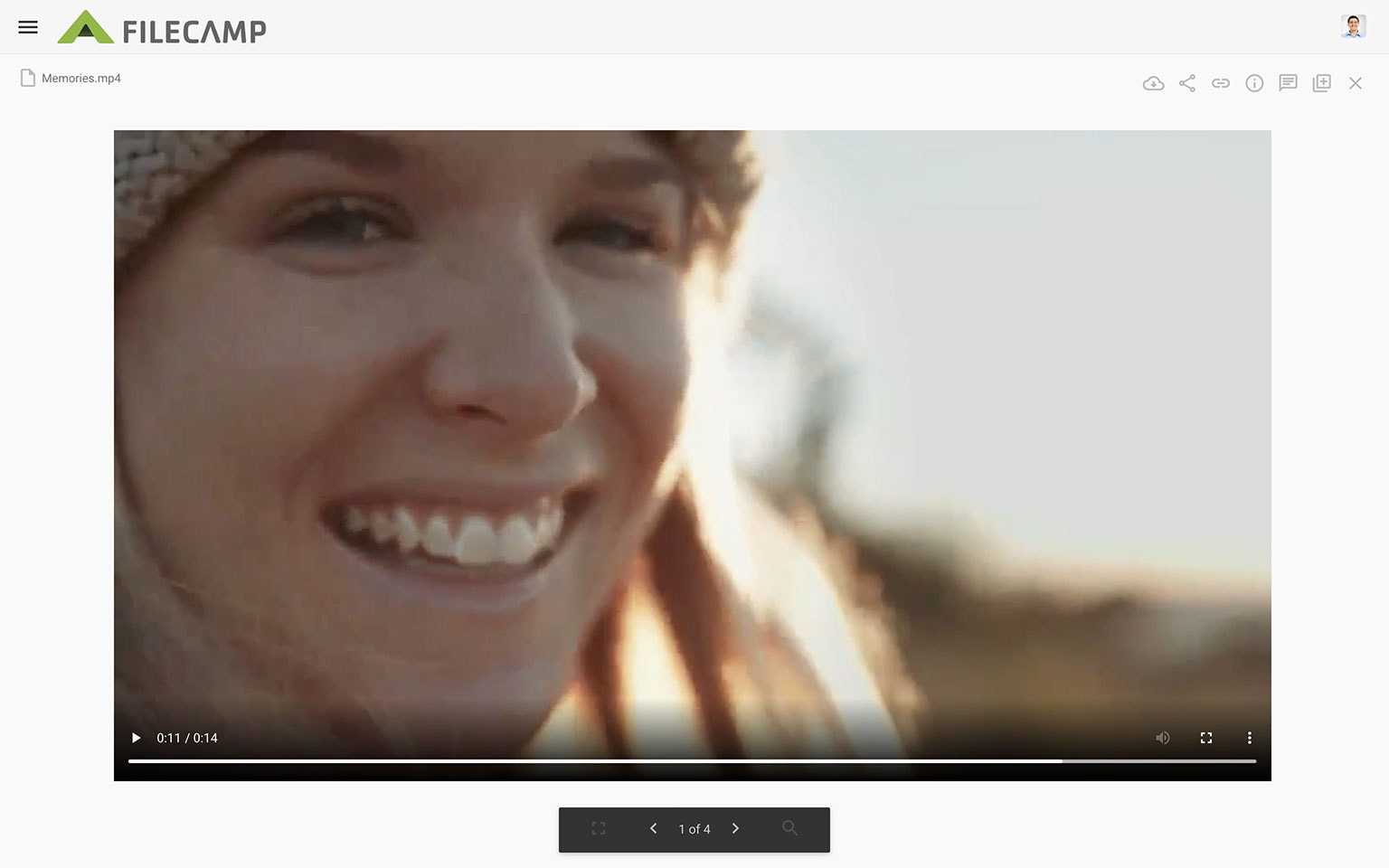 Notice: By default Filecamp encodes a mp4/.m4a (H.264) version of all video files so that they can be previewed in a browser. The encoding process starts automatically, but for large video files, it might take 10-15 minutes before they can be previewed in your browser. Also, notice that these preview versions of your video files take up extra storage in your account. If this is a problem, you can disable encoding of video files in General Settings.